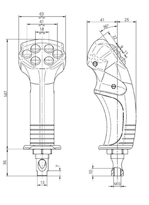 Bedienhebel, Steuerhebel für Hydraulikventil mit 2 Druckknöpfen